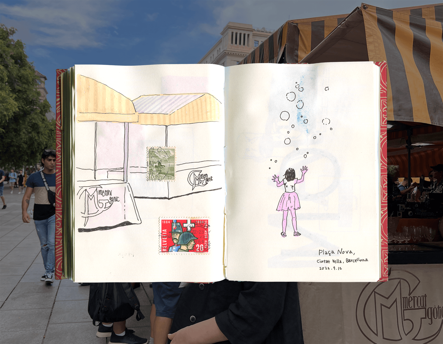 바르셀로나의 늦여름을 여행하며 수집한 물건들과 드로잉을 콜라쥬한 여행 노트입니다. 직접 보고 만지고 맛보았던 생기 넘치는 바르셀로나의 모습을 하나의 노트에 모아 약 1년동안 작업한 개인의 기록물입니다.