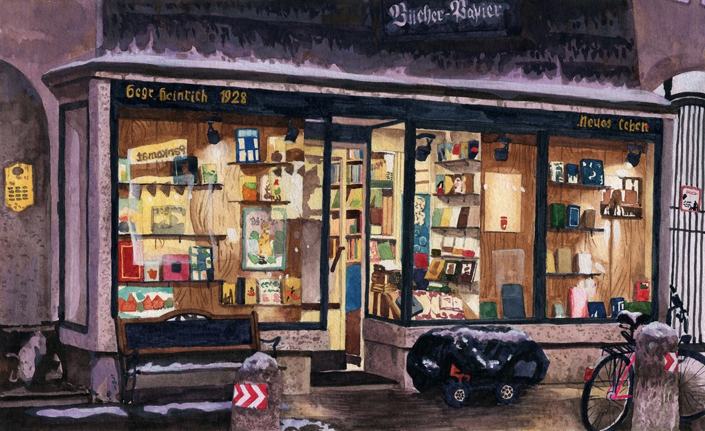 오스트리아의 잘츠부르크를 여행하며 우연히 발견한 오래된 헌 책방을 수채화로 담아내었습니다.