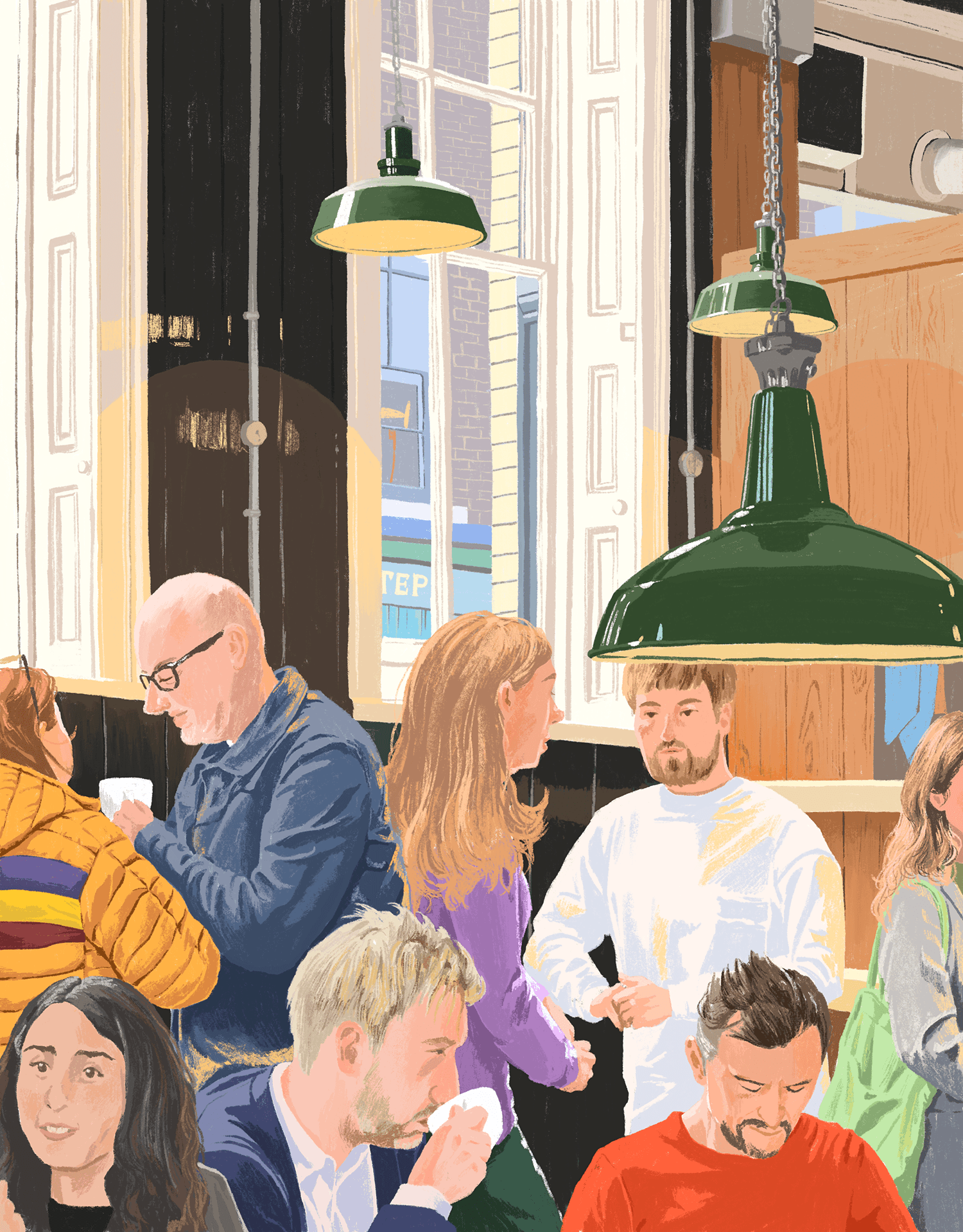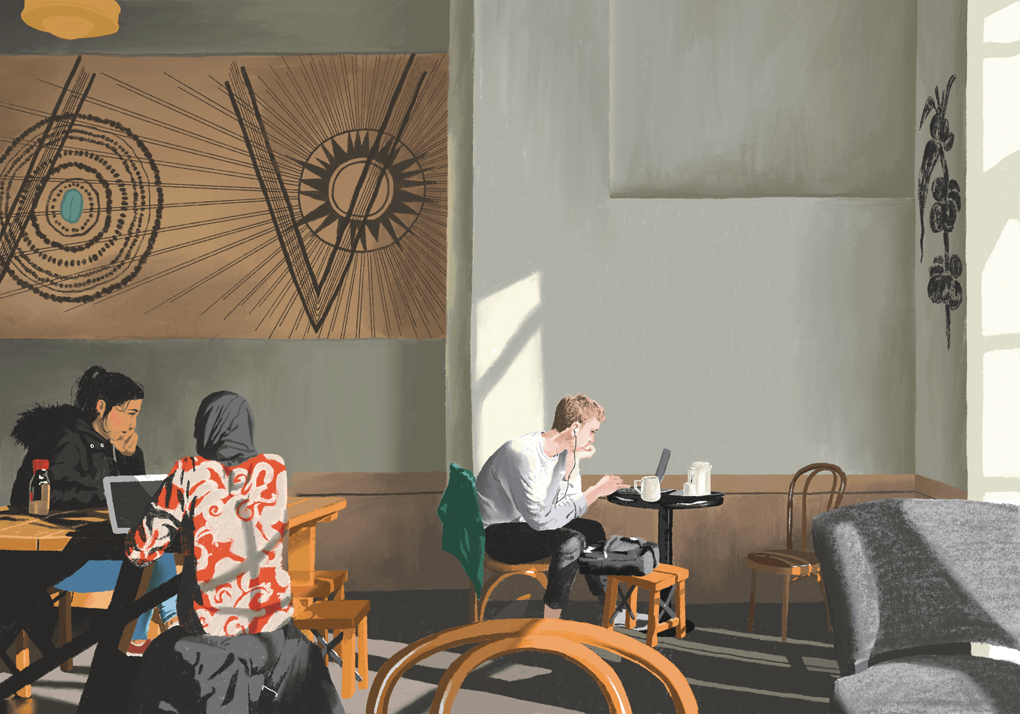 ‘Cafe’라는 공간에서 무언가에 집중하거나 이야기를 하고 있는 다양한 사람들의 자연스러운 모습을 포착하여 연작으로 작업하였습니다.